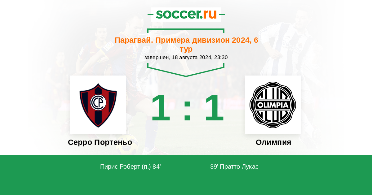 Серро Портеньо - Олимпия: обзор матча 18 августа 2024
