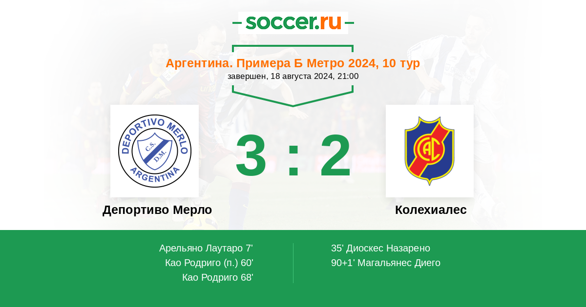 Депортиво Мерло - Колехиалес: обзор матча 18 августа 2024