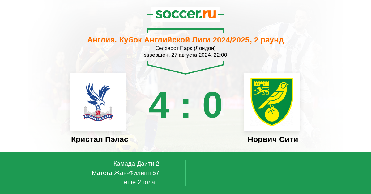 Кристал Пэлас - Норвич Сити: обзор матча 27 августа 2024
