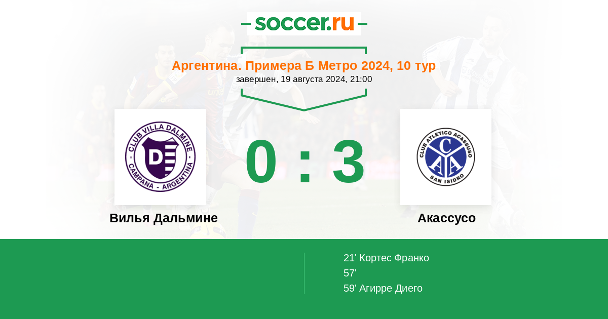 Вилья Дальмине - Акассусо: обзор матча 19 августа 2024
