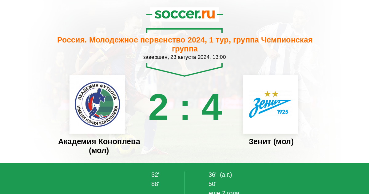 Академия Коноплева (мол) - Зенит (мол): обзор матча 23 августа 2024