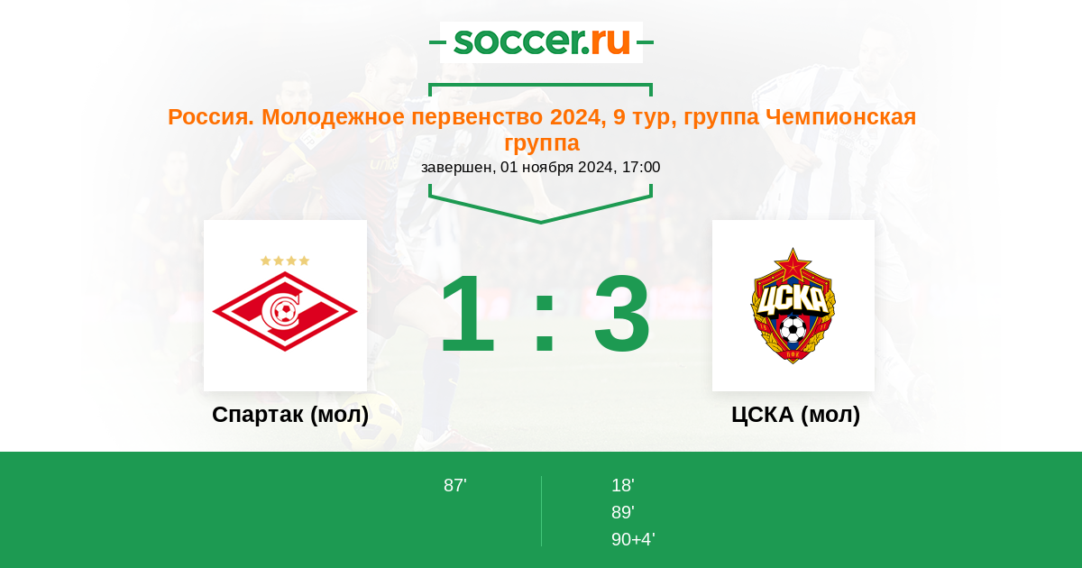 Спартак (мол) - ЦСКА (мол): обзор матча 1 ноября 2024