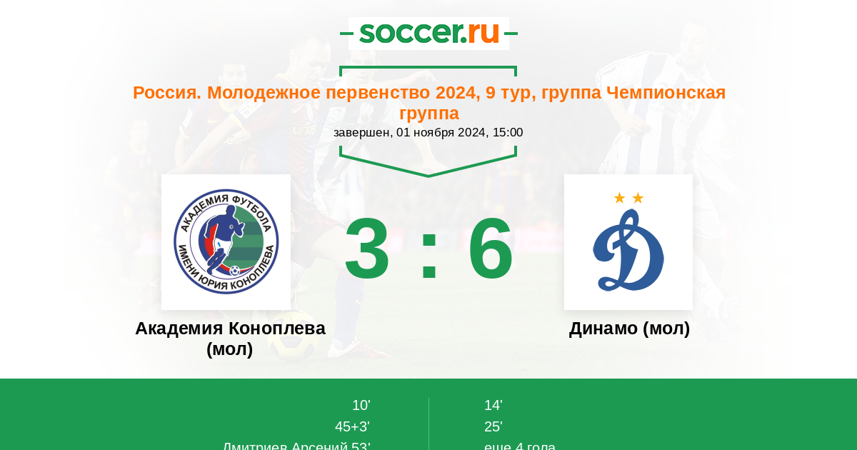 Академия Коноплева (мол) - Динамо (мол): обзор матча 1 ноября 2024