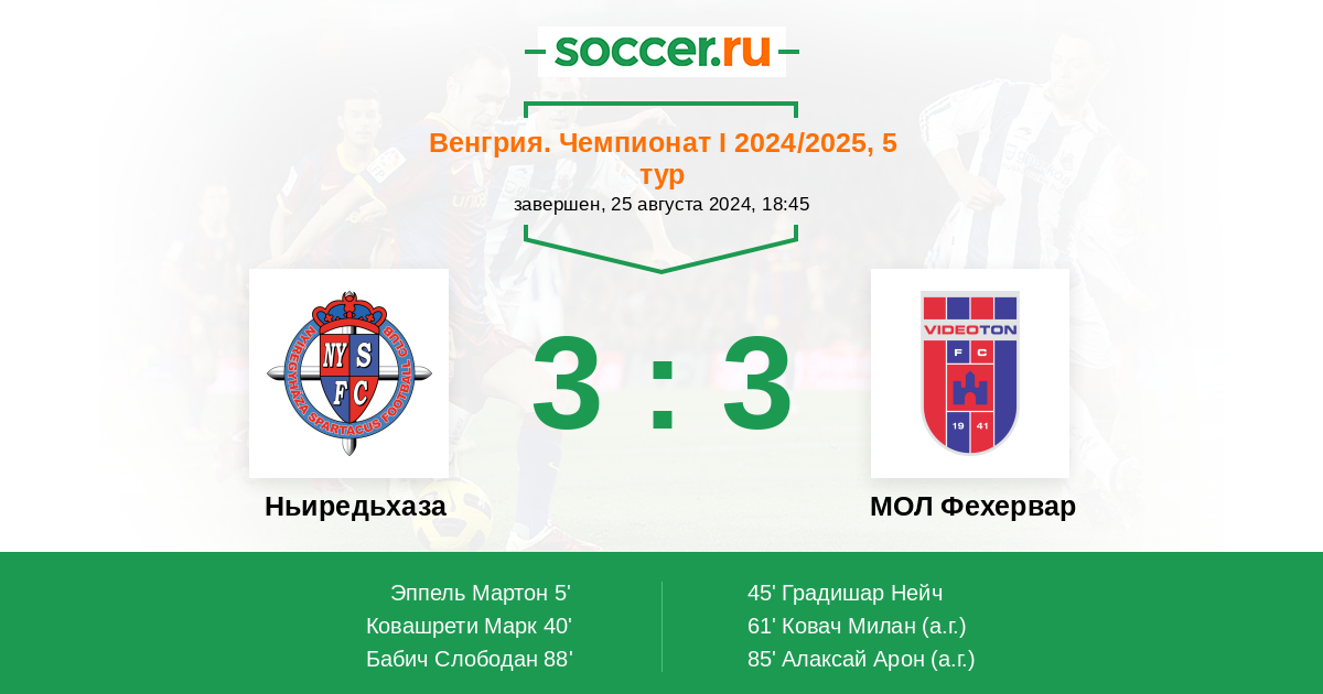 Ньиредьхаза - МОЛ Фехервар: обзор матча 25 августа 2024
