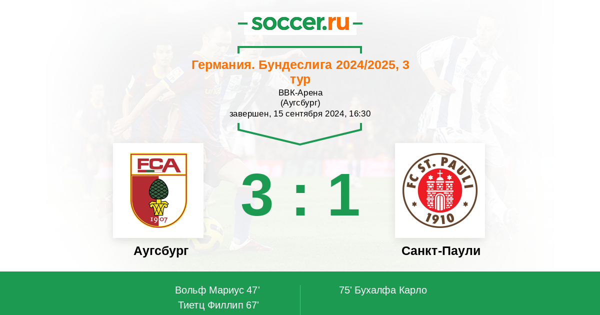 Аугсбург - Санкт-Паули: обзор матча 15 сентября 2024