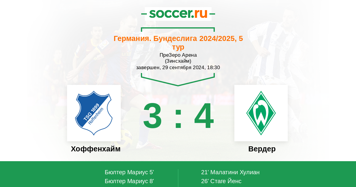 Хоффенхайм - Вердер: обзор матча 29 сентября 2024