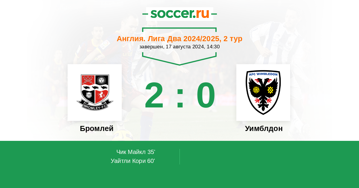 Бромлей - Уимблдон: обзор матча 17 августа 2024