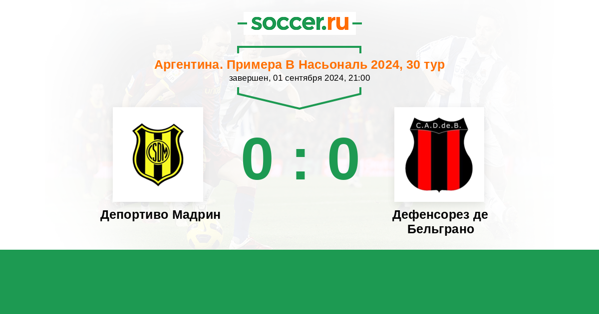 Депортиво Мадрин - Дефенсорез де Бельграно: обзор матча 1 сентября 2024