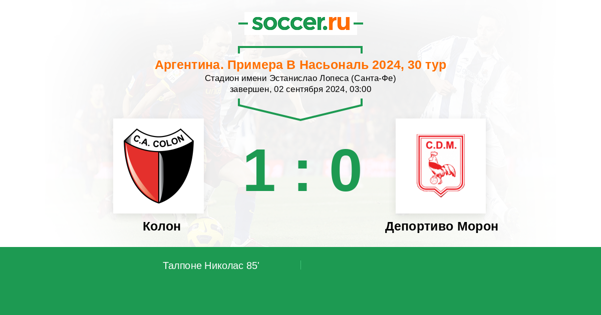 Колон - Депортиво Морон: обзор матча 2 сентября 2024