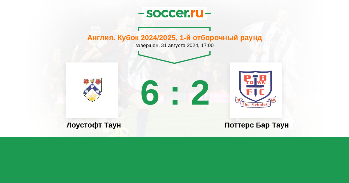 Лоустофт Таун - Поттерс Бар Таун: обзор матча 31 августа 2024