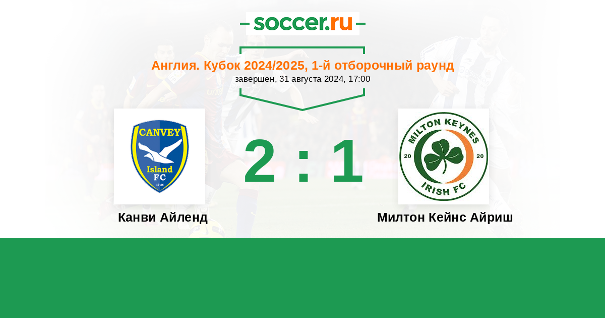 Канви Айленд - Милтон Кейнс Айриш: обзор матча 31 августа 2024