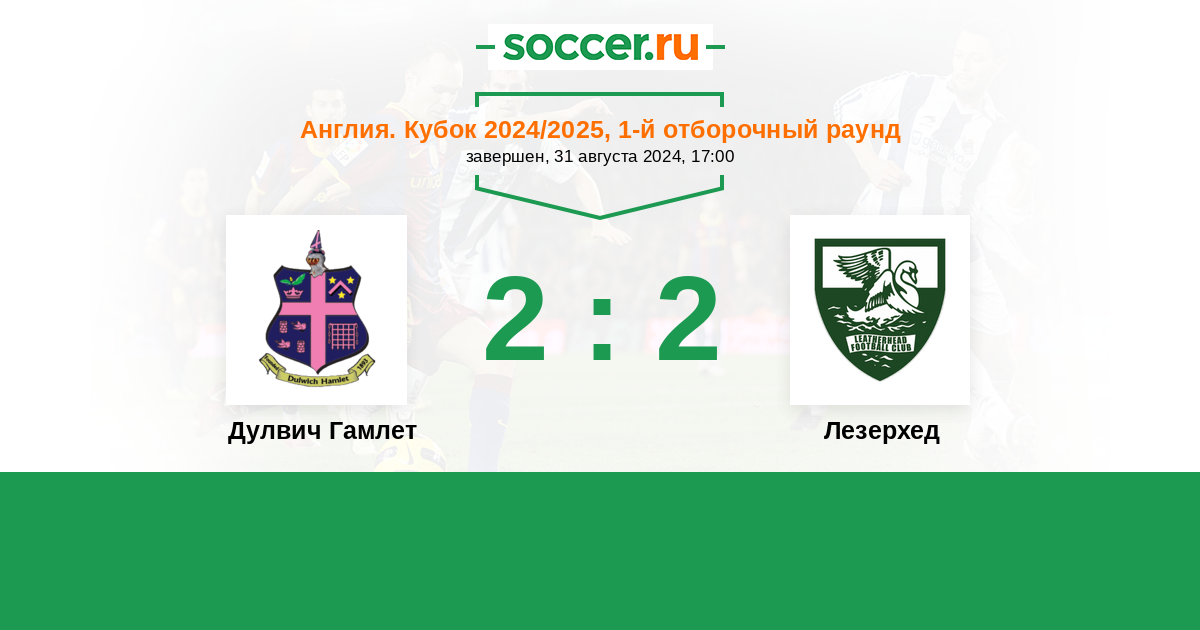 Дулвич Гамлет - Лезерхед: обзор матча 31 августа 2024