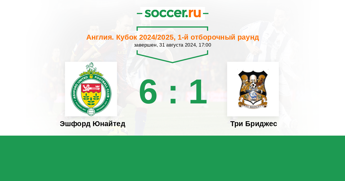 Эшфорд Юнайтед - Три Бриджес: обзор матча 31 августа 2024