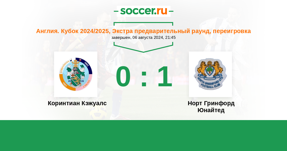 Коринтиан Кэжуалс - Норт Гринфорд Юнайтед: обзор матча 6 августа 2024