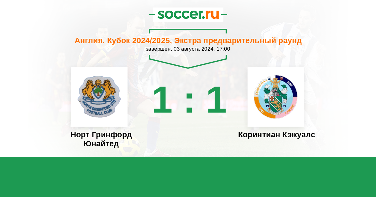 Норт Гринфорд Юнайтед - Коринтиан Кэжуалс: обзор матча 3 августа 2024