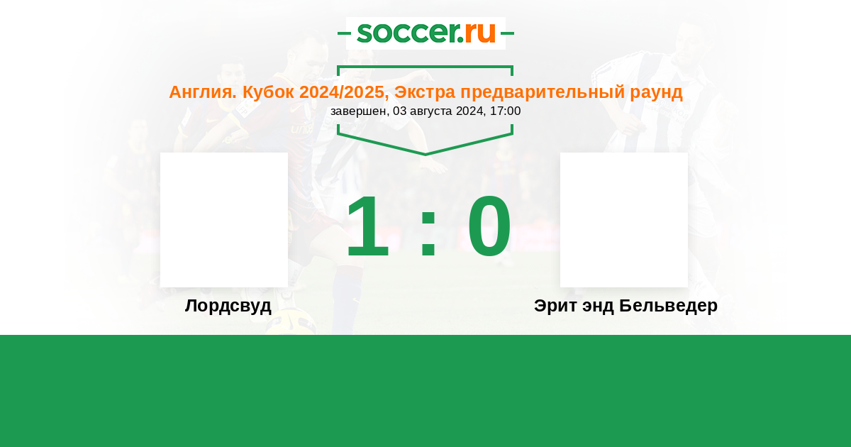 Лордсвуд - Эрит энд Бельведер: обзор матча 3 августа 2024