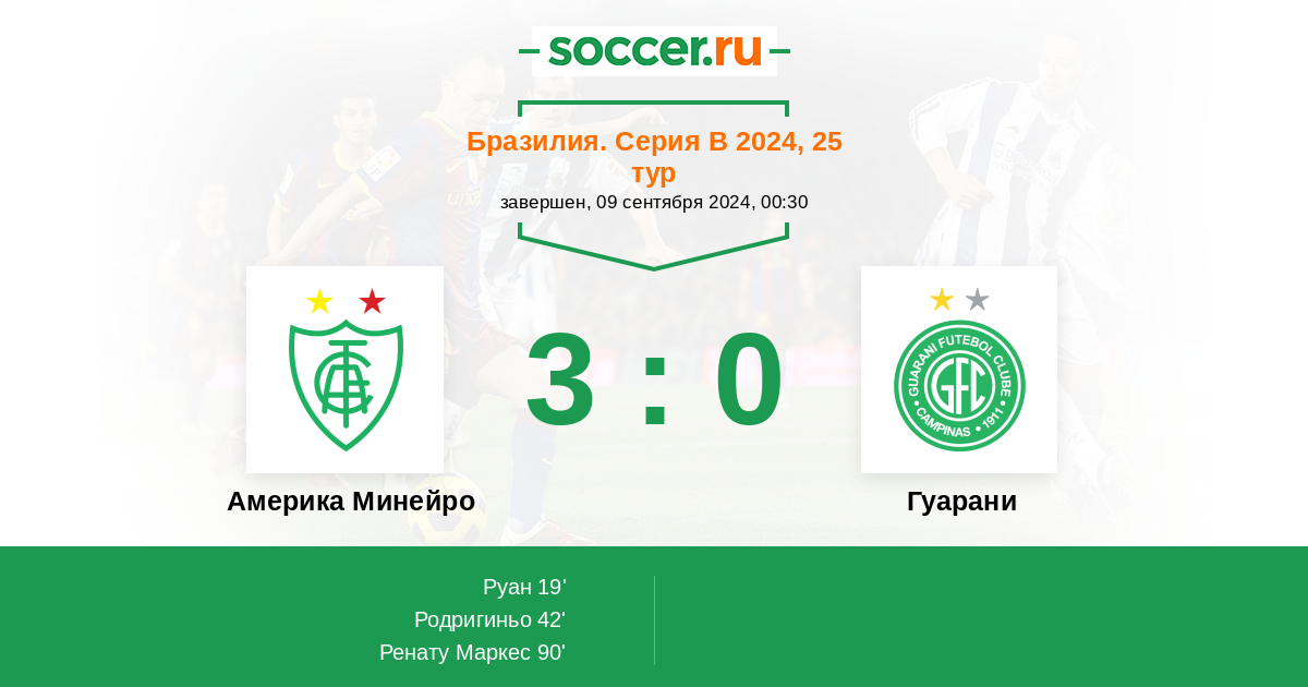 Америка Минейро - Гуарани: обзор матча 9 сентября 2024