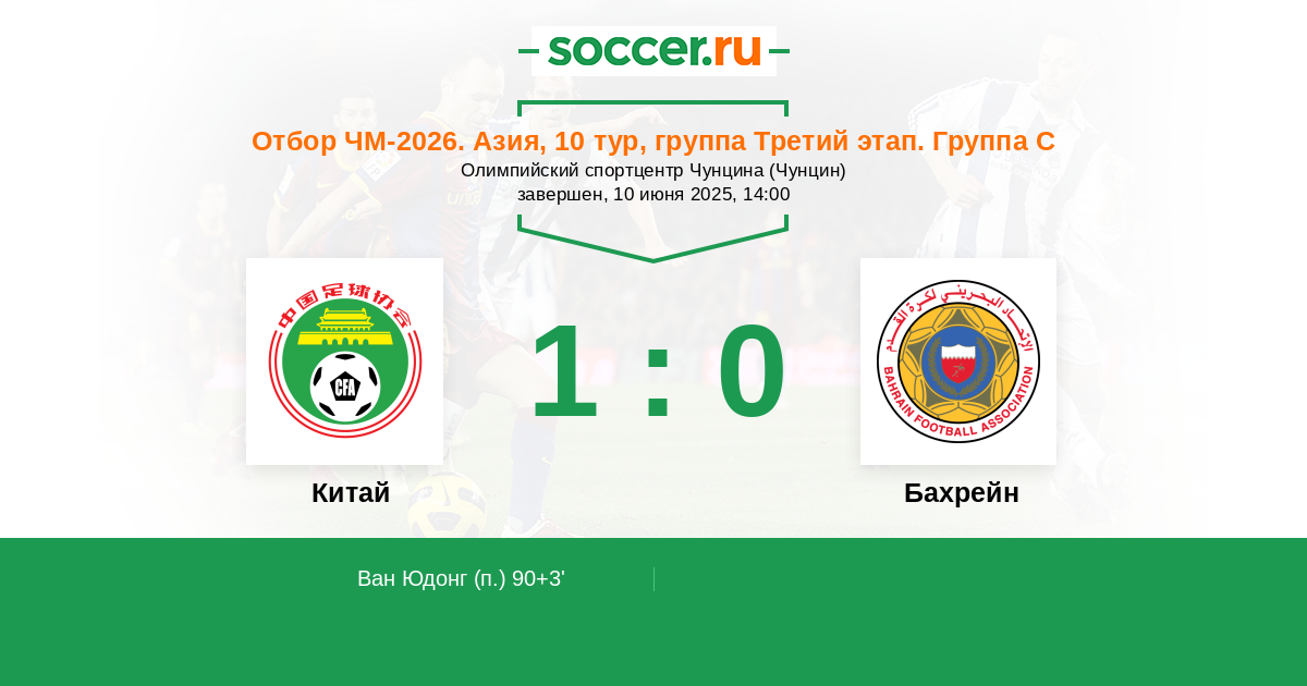Китай - Бахрейн: обзор матча 10 июня 2025