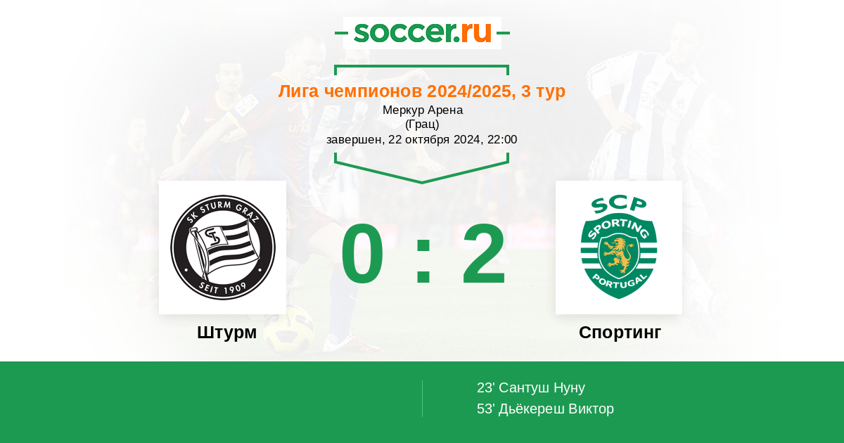Штурм - Спортинг: обзор матча 22 октября 2024