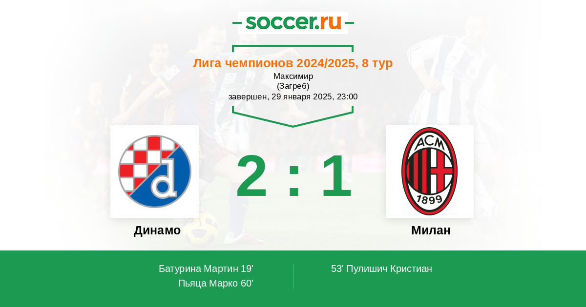 Динамо - Милан: обзор матча 29 января 2025