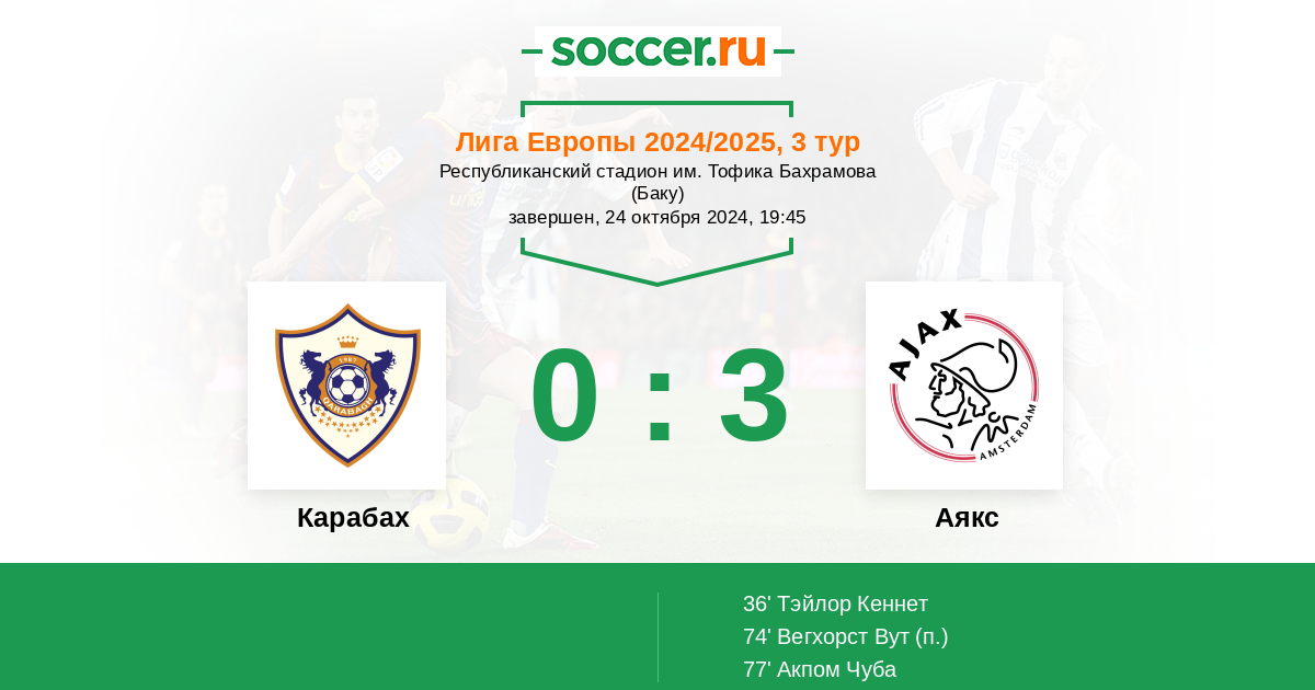 Карабах - Аякс: обзор матча 24 октября 2024