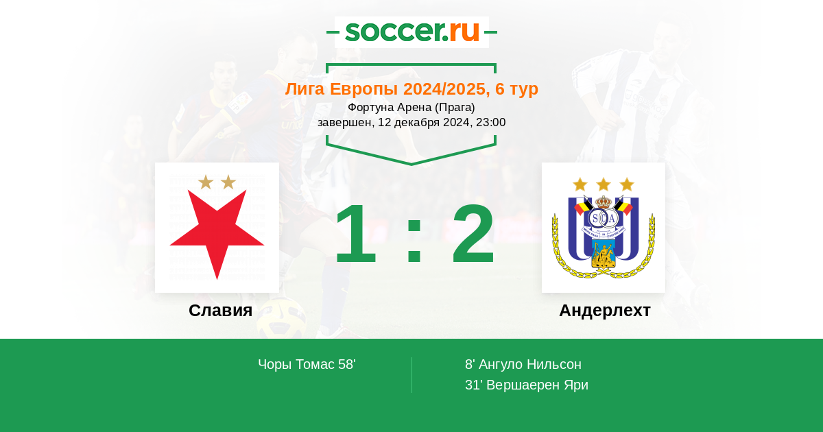 Славия - Андерлехт: обзор матча 12 декабря 2024