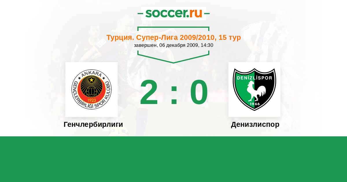 Генчлербирлиги - Денизлиспор: обзор матча 6 декабря 2009