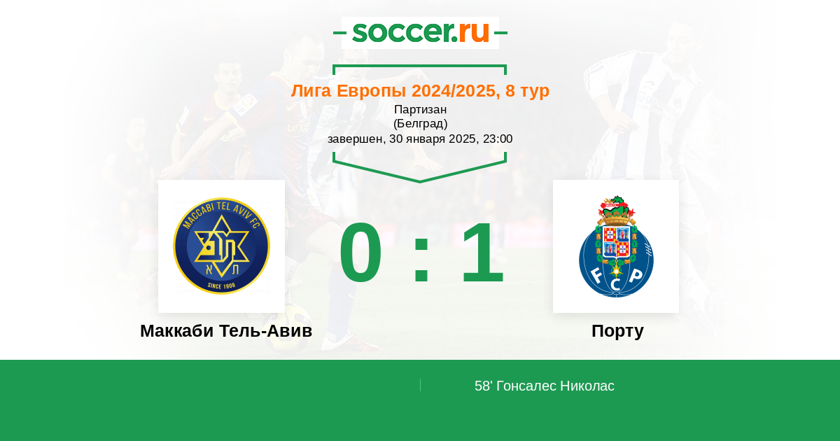 Маккаби Тель-Авив - Порту: обзор матча 30 января 2025