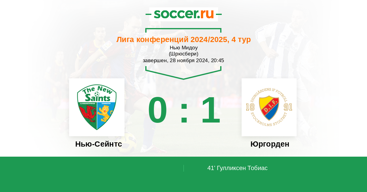 Нью-Сейнтс - Юргорден: обзор матча 28 ноября 2024