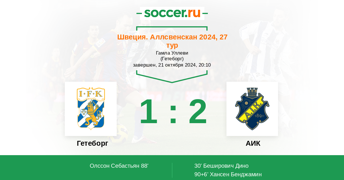 Гетеборг - АИК: обзор матча 21 октября 2024