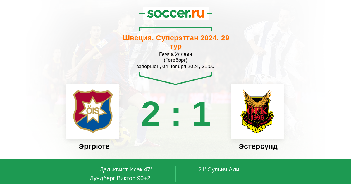 Эргрюте - Эстерсунд: обзор матча 4 ноября 2024