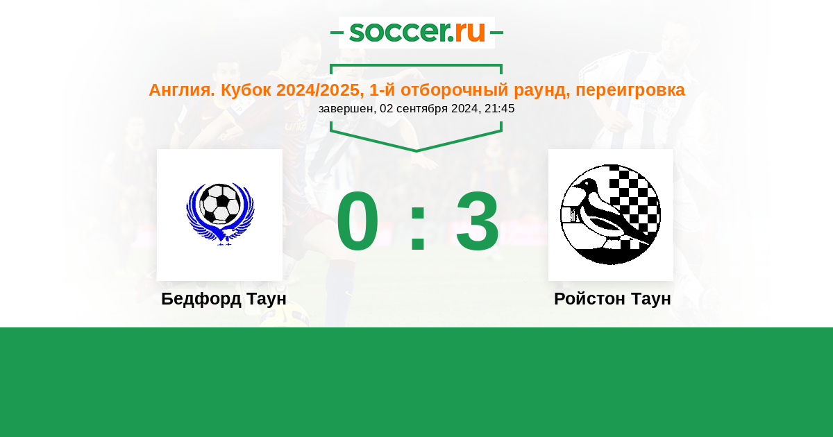 Бедфорд Таун - Ройстон Таун: обзор матча 2 сентября 2024