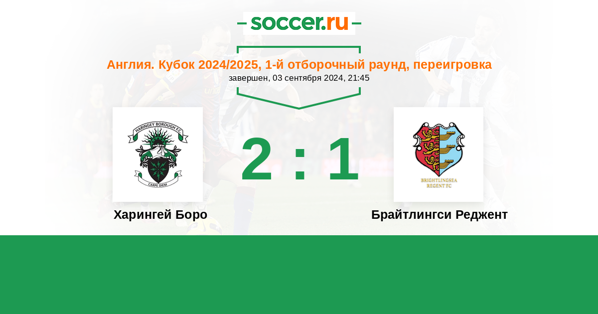 Харингей Боро - Брайтлингси Реджент: обзор матча 3 сентября 2024
