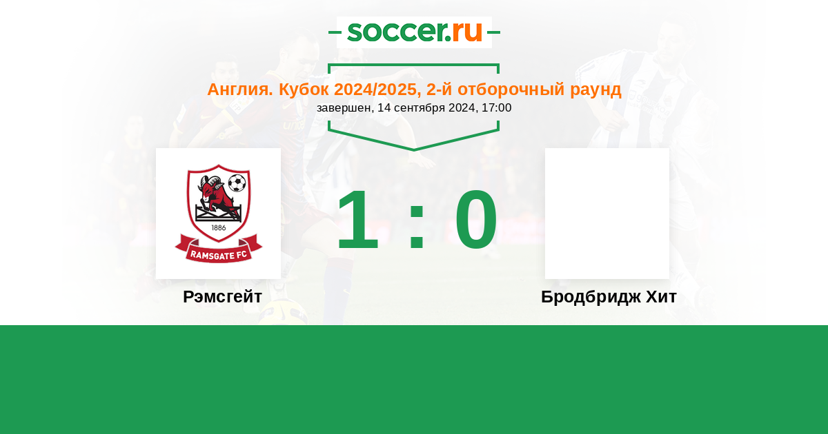 Рэмсгейт - Бродбридж Хит: обзор матча 14 сентября 2024