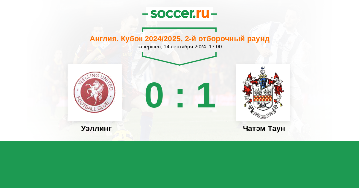 Уэллинг - Чатэм Таун: обзор матча 14 сентября 2024