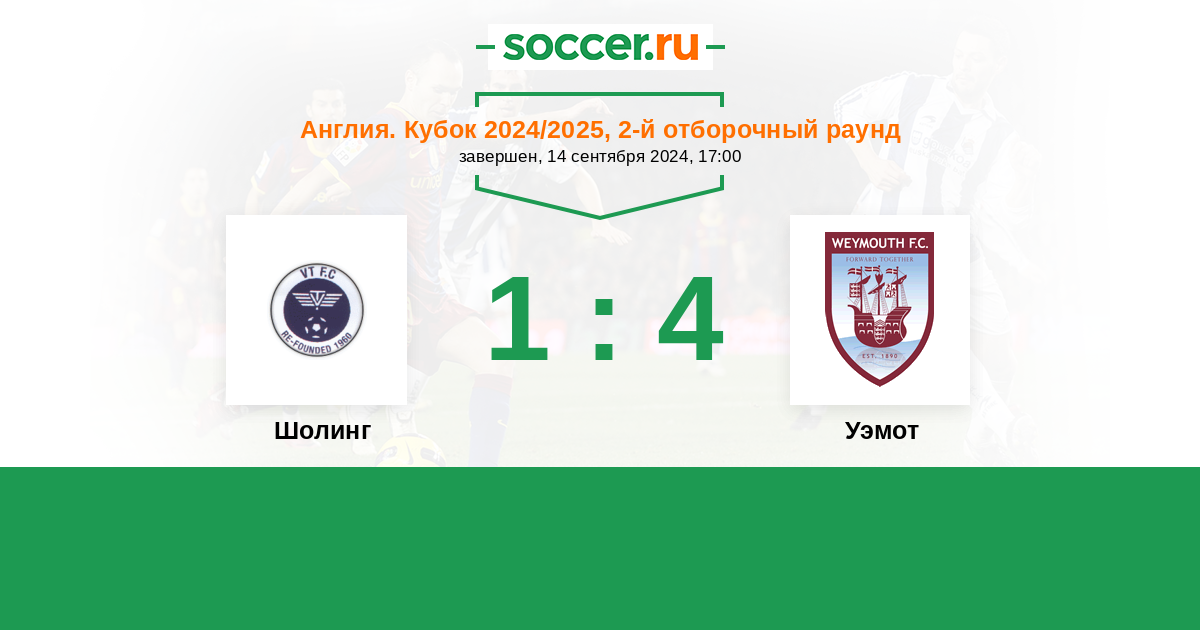 Шолинг - Уэмот: обзор матча 14 сентября 2024