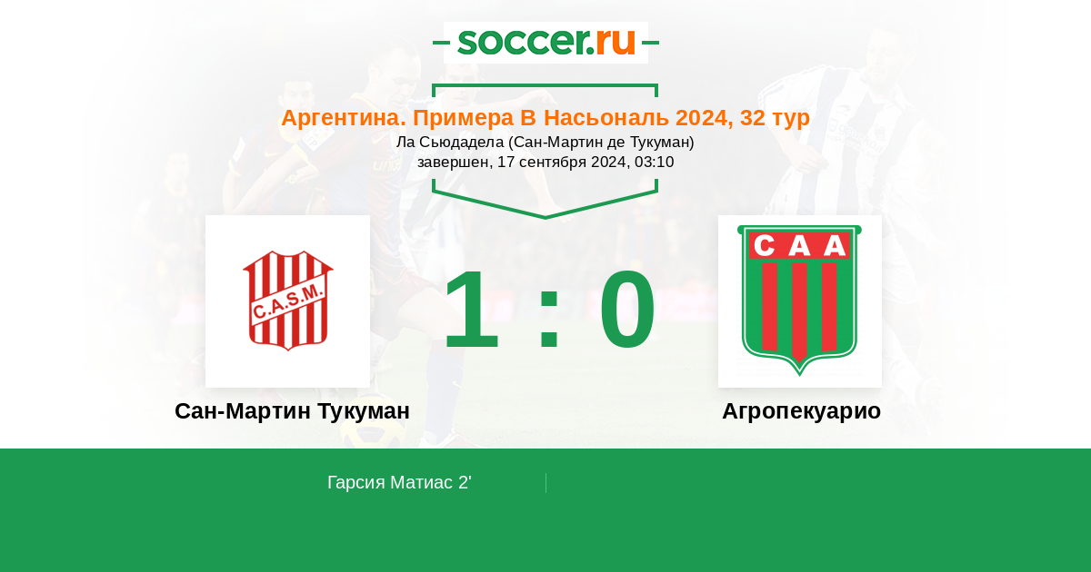 Сан-Мартин Тукуман - Агропекуарио: обзор матча 17 сентября 2024