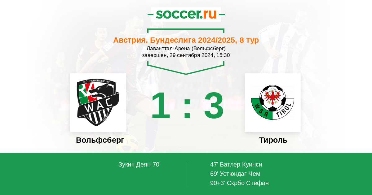 Вольфсберг - Тироль: обзор матча 29 сентября 2024
