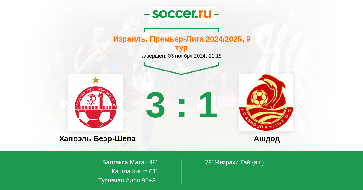 Хапоэль Беэр-Шева - Ашдод: обзор матча 3 ноября 2024