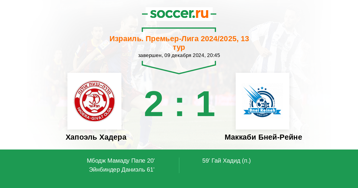 Хапоэль Хадера - Маккаби Бней-Рейне: обзор матча 9 декабря 2024