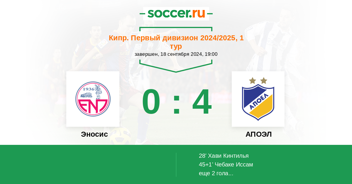 Эносис - АПОЭЛ: обзор матча 18 сентября 2024