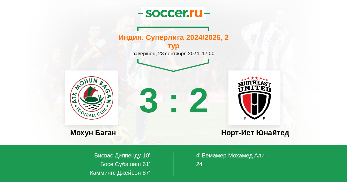 Мохун Баган - Норт-Ист Юнайтед: обзор матча 23 сентября 2024