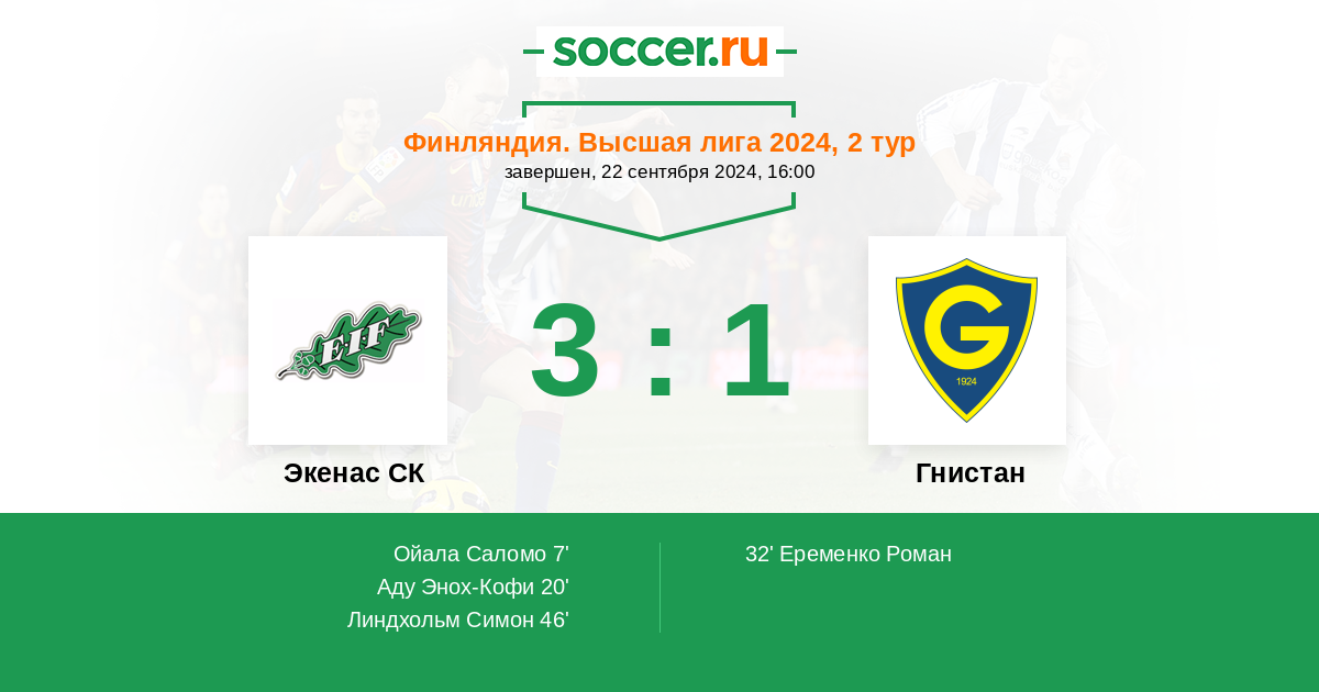 Экенас СК - Гнистан: обзор матча 22 сентября 2024