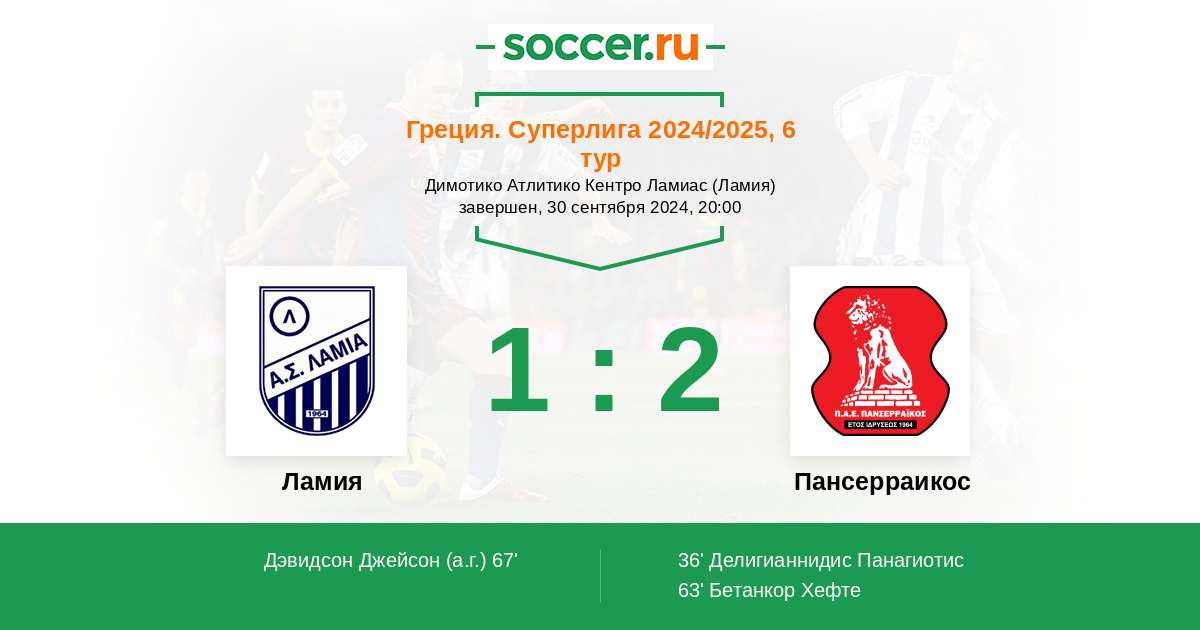 Ламия - Пансерраикос: обзор матча 30 сентября 2024