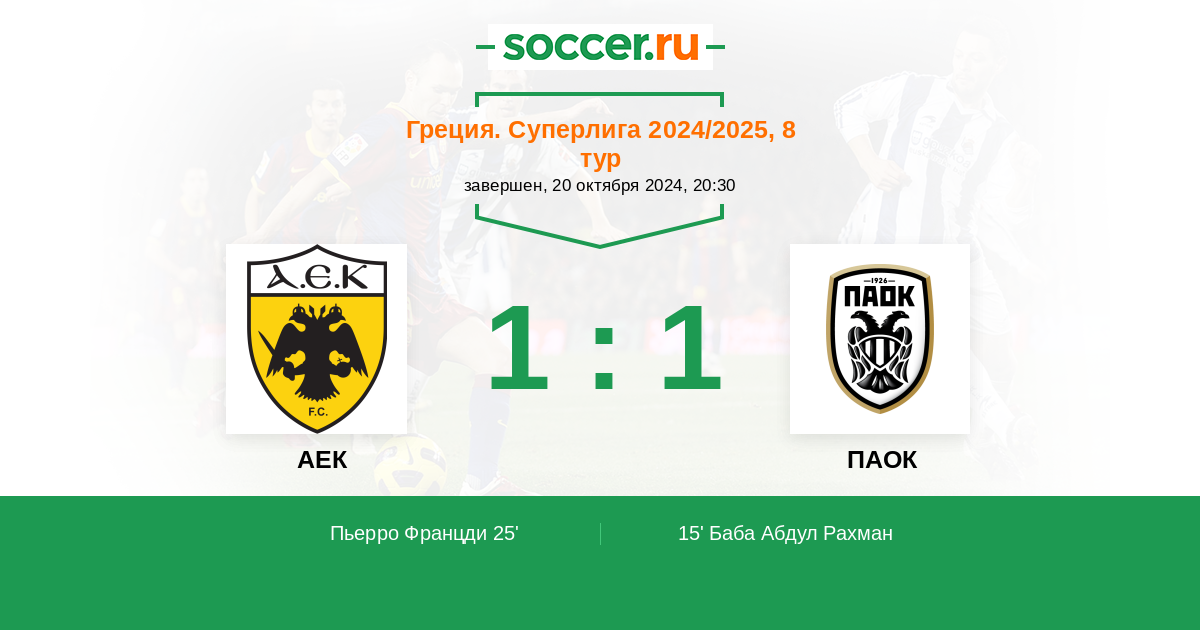 АЕК - ПАОК: обзор матча 20 октября 2024