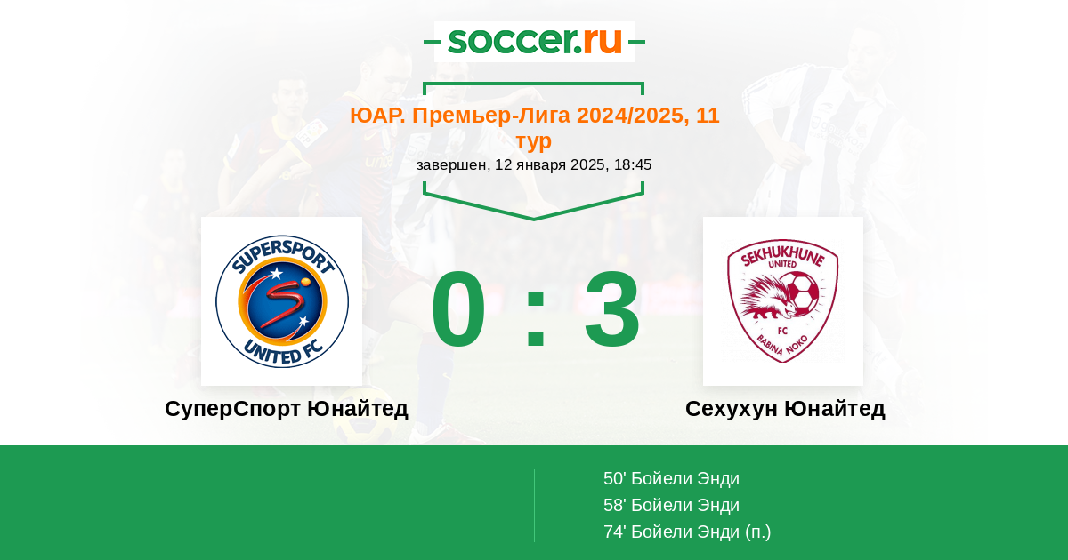 СуперСпорт Юнайтед - Сехухун Юнайтед: обзор матча 12 января 2025