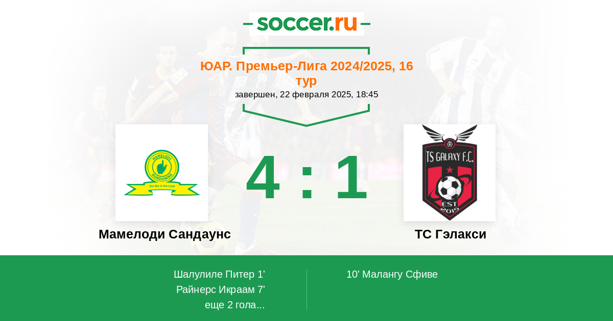 Мамелоди Сандаунс - ТС Гэлакси: обзор матча 22 февраля 2025