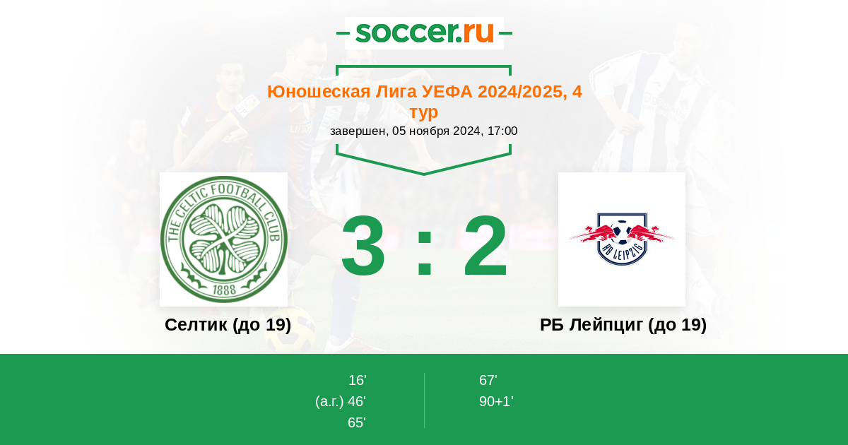 Селтик (до 19) - РБ Лейпциг (до 19): обзор матча 5 ноября 2024