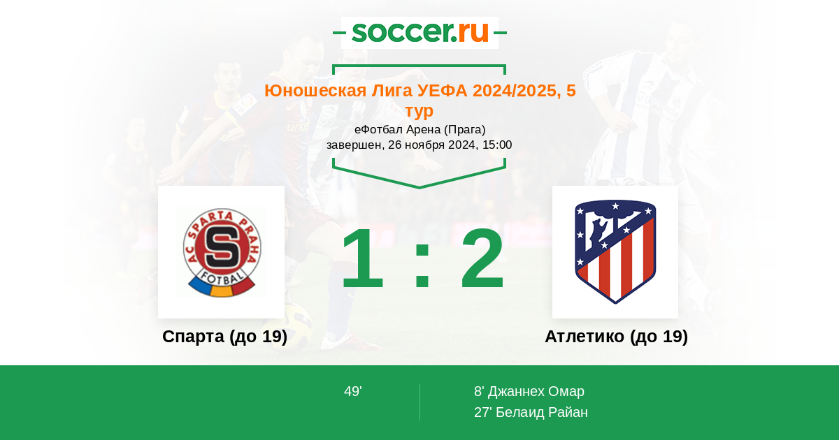 Спарта (до 19) - Атлетико (до 19): обзор матча 26 ноября 2024