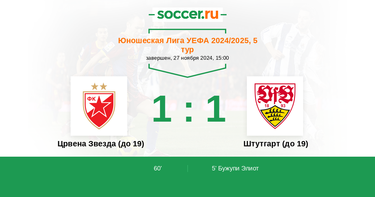 Црвена Звезда (до 19) - Штутгарт (до 19): обзор матча 27 ноября 2024